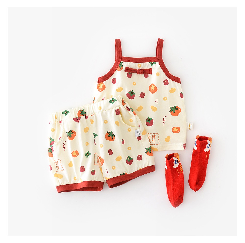 【BE121】日系好柿花生吊帶無袖短褲套裝(1色)