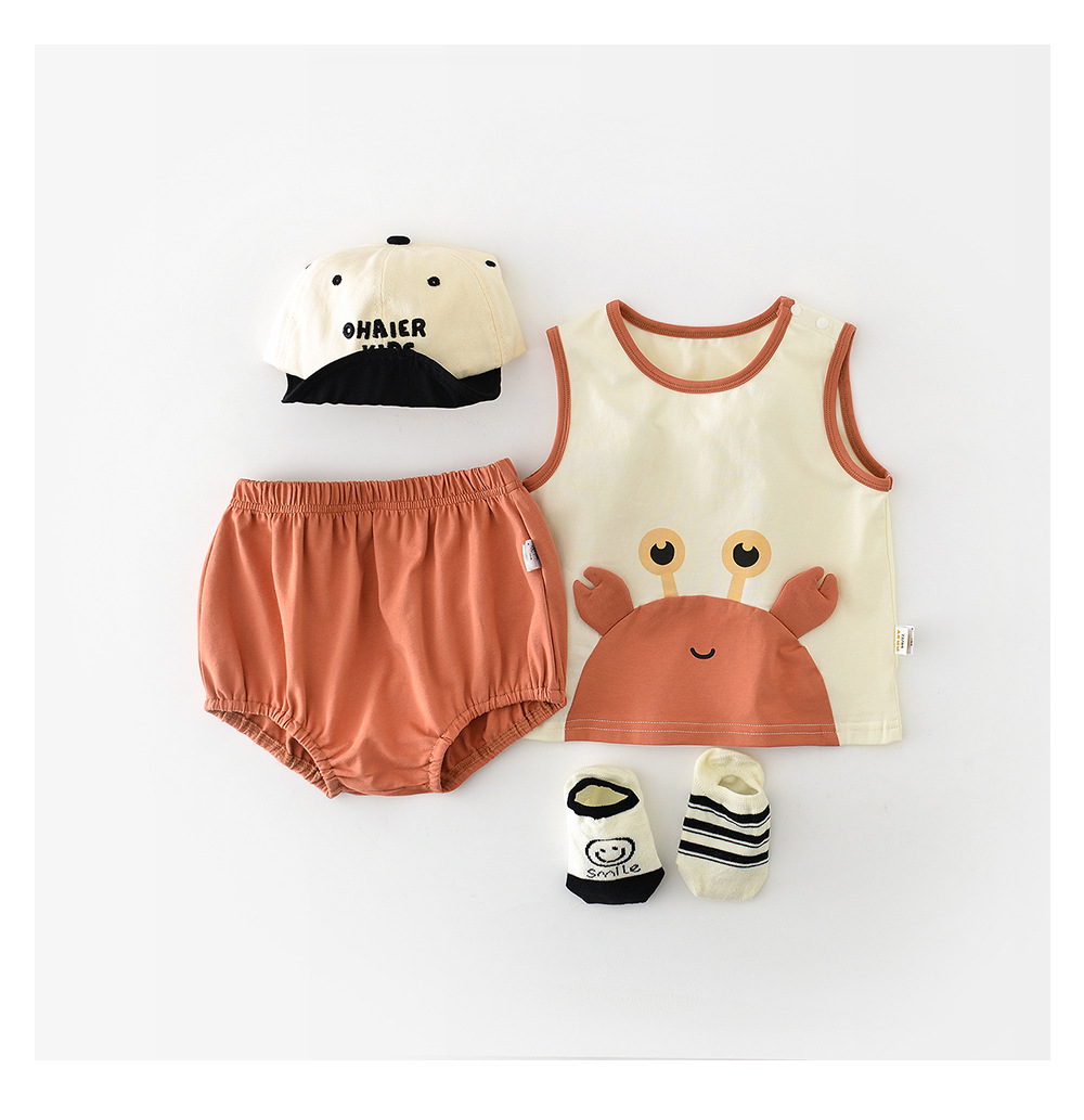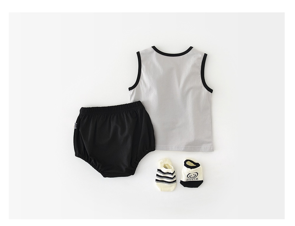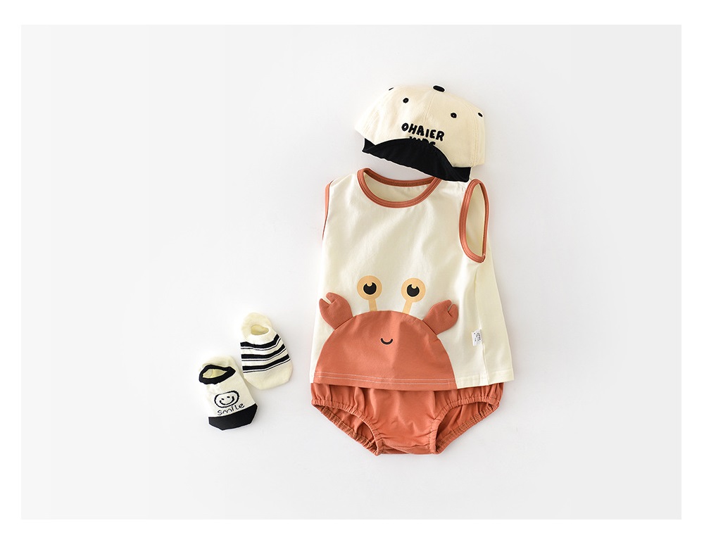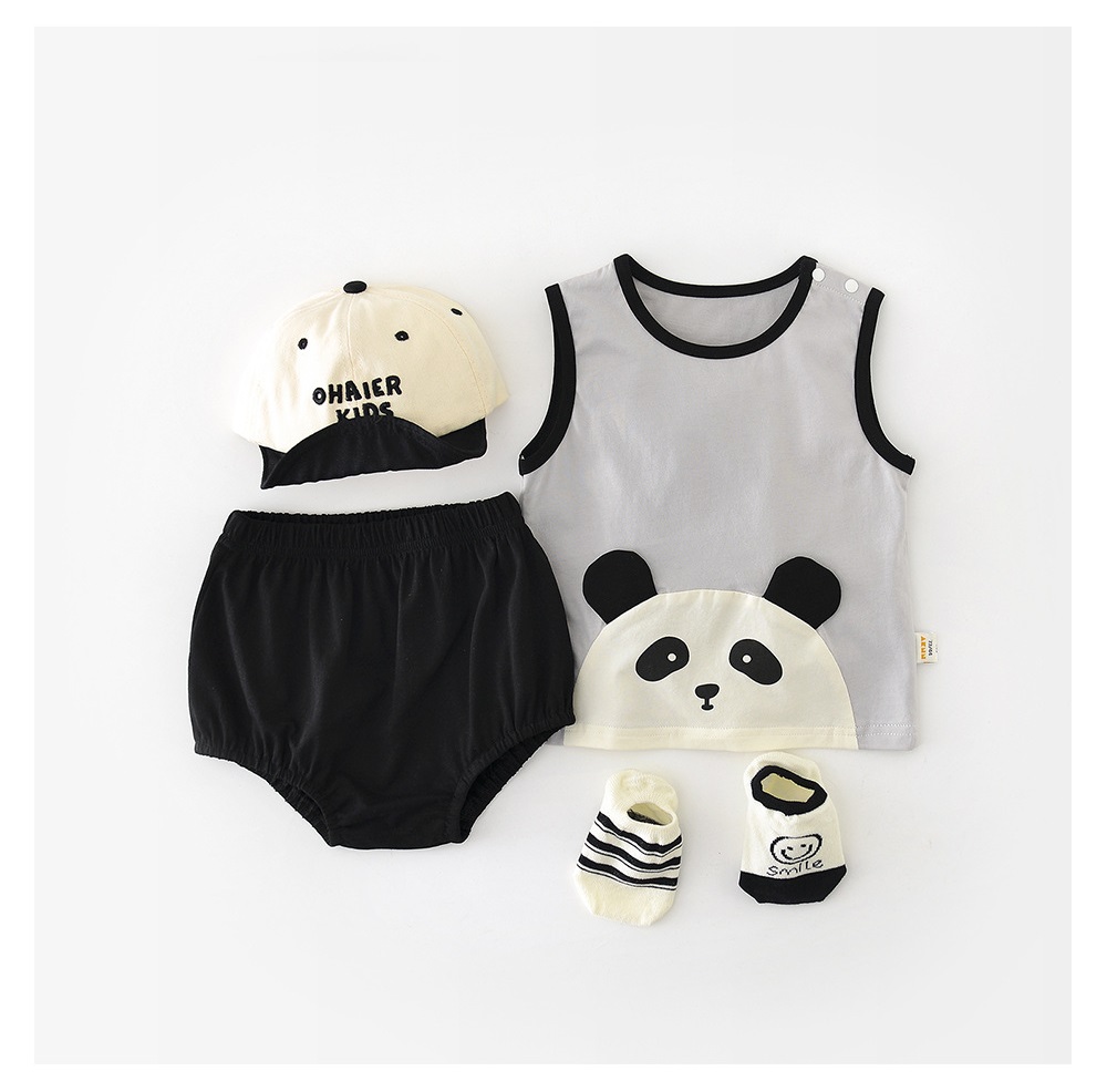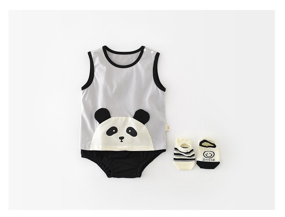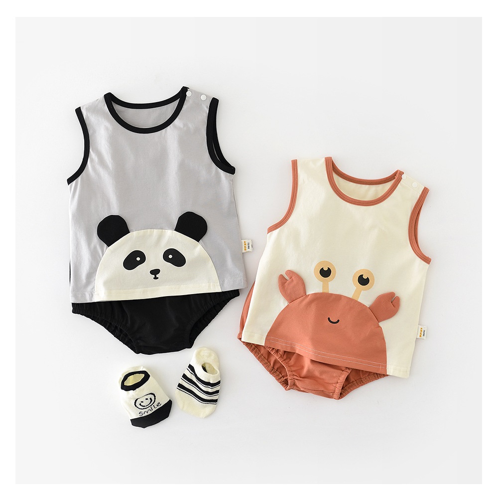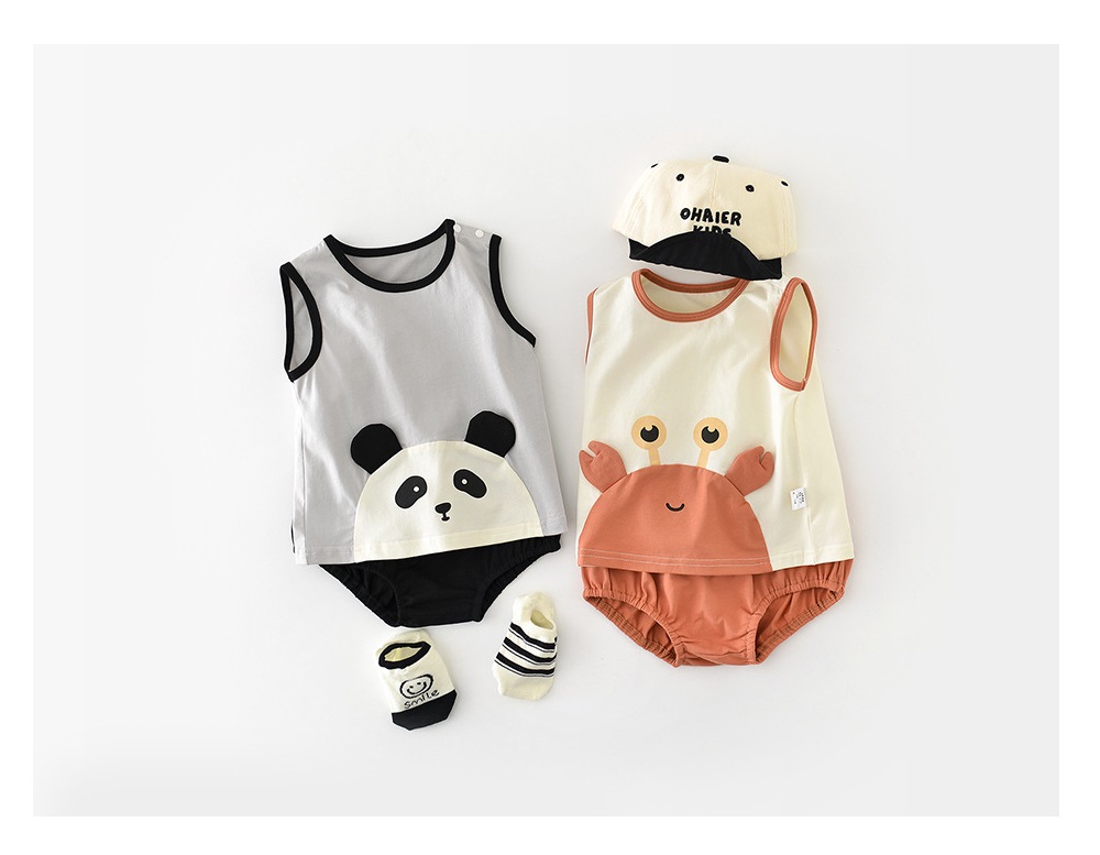 【BE124】日系螃蟹貓熊無袖短褲套裝(2色)