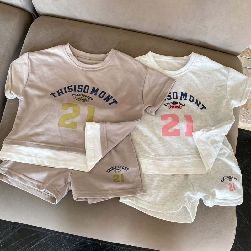 【BS232】日系字母21兄妹短袖短褲套裝(2色)