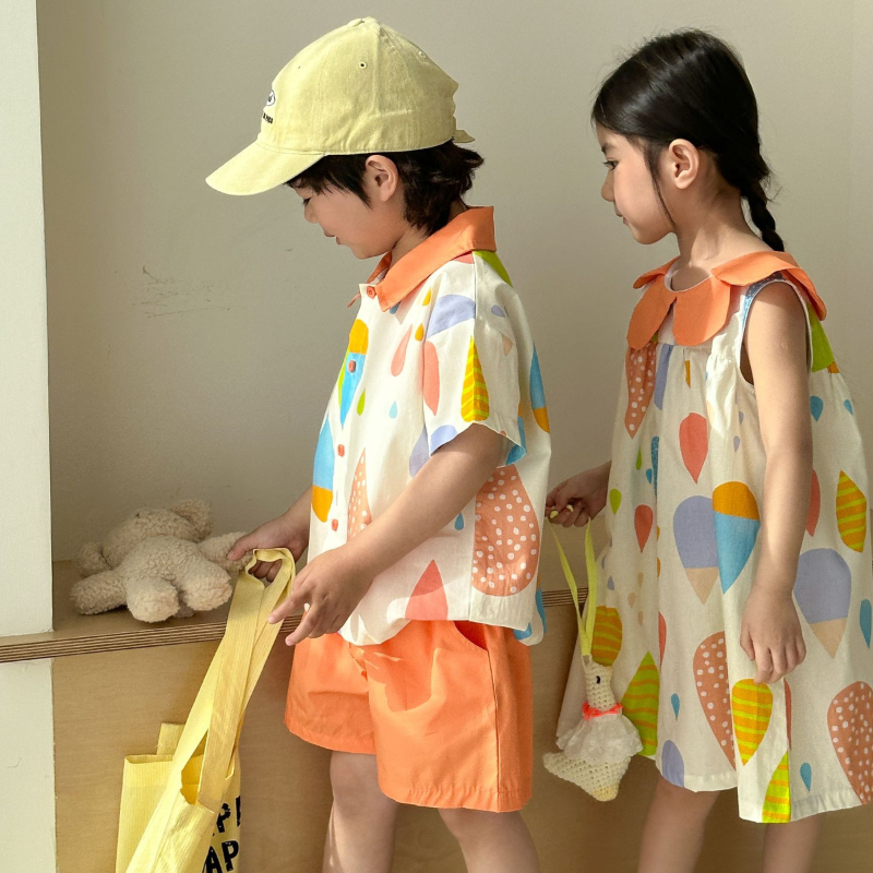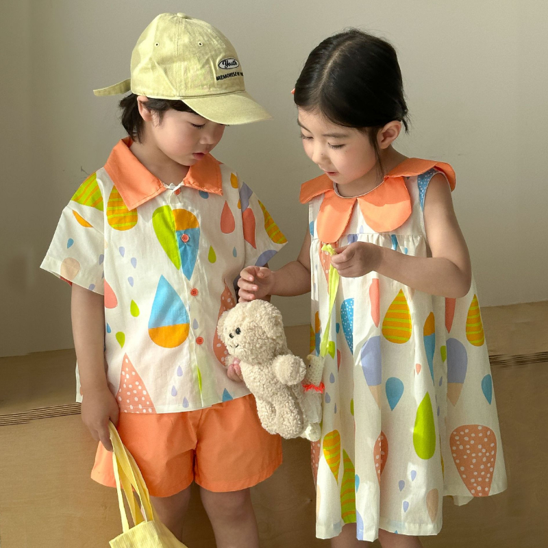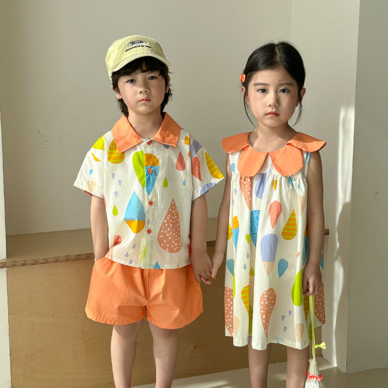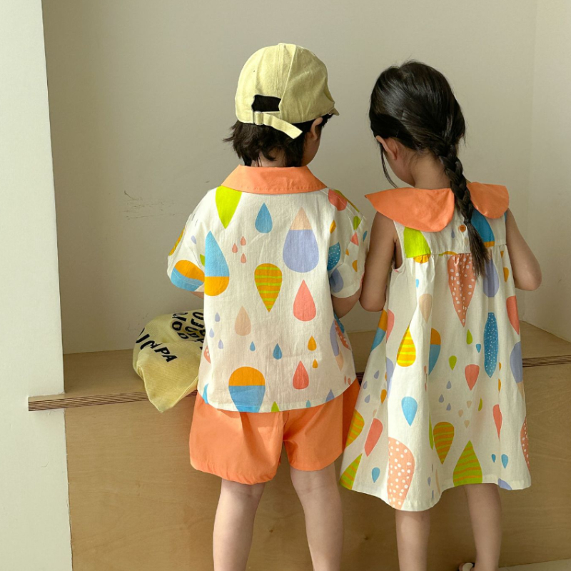 【BS236】日系繽紛彩色水滴兄妹短袖洋裝套裝(1色)