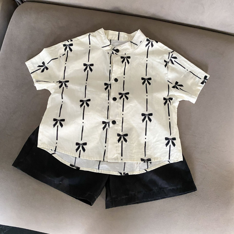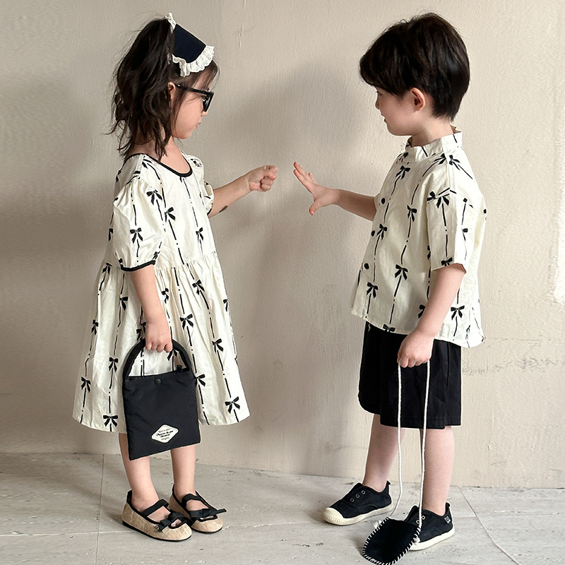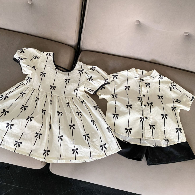 【BS237】日系黑蝴蝶結兄妹短袖洋裝套裝(1色)