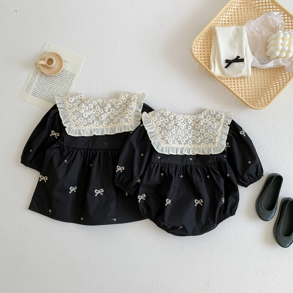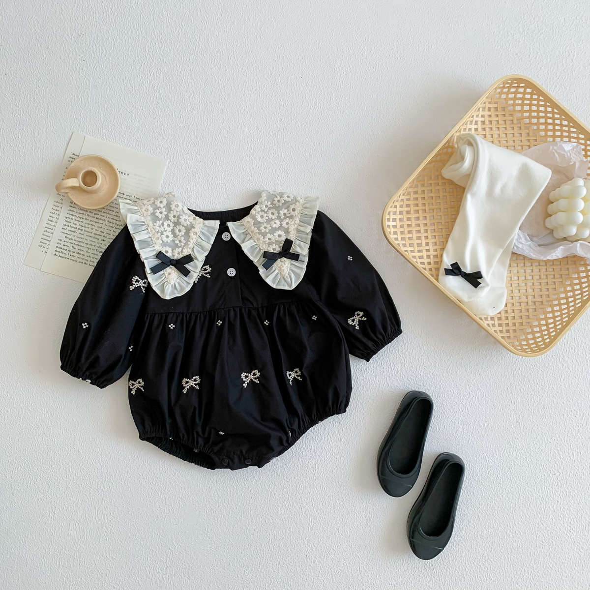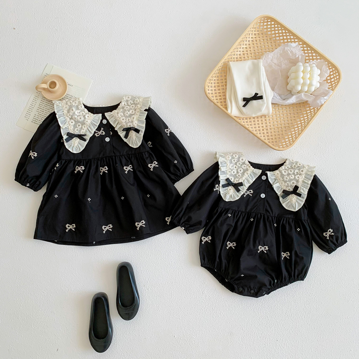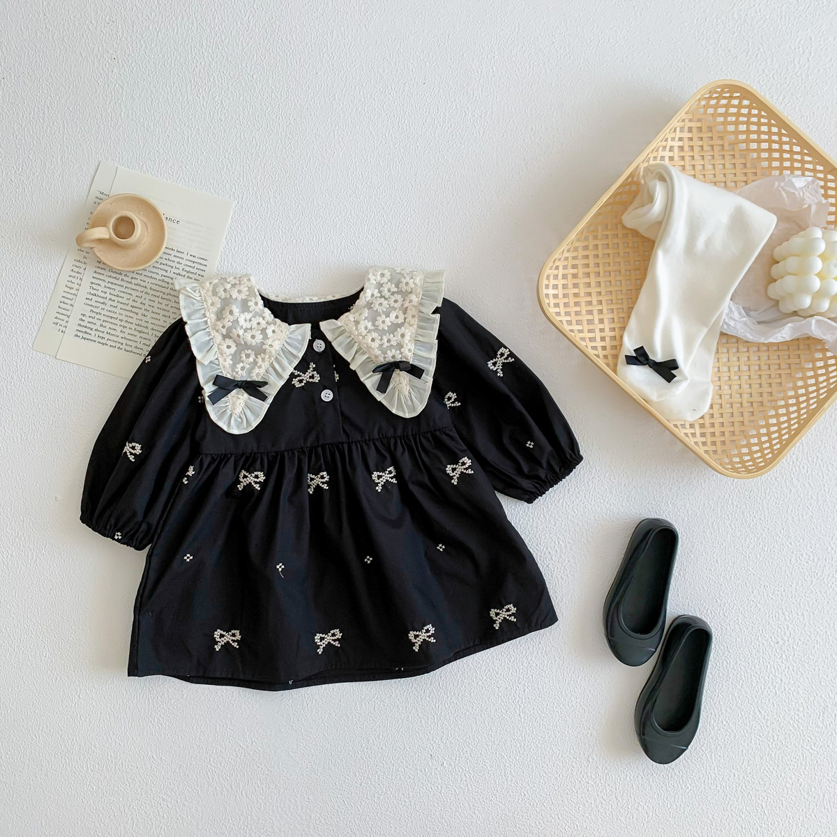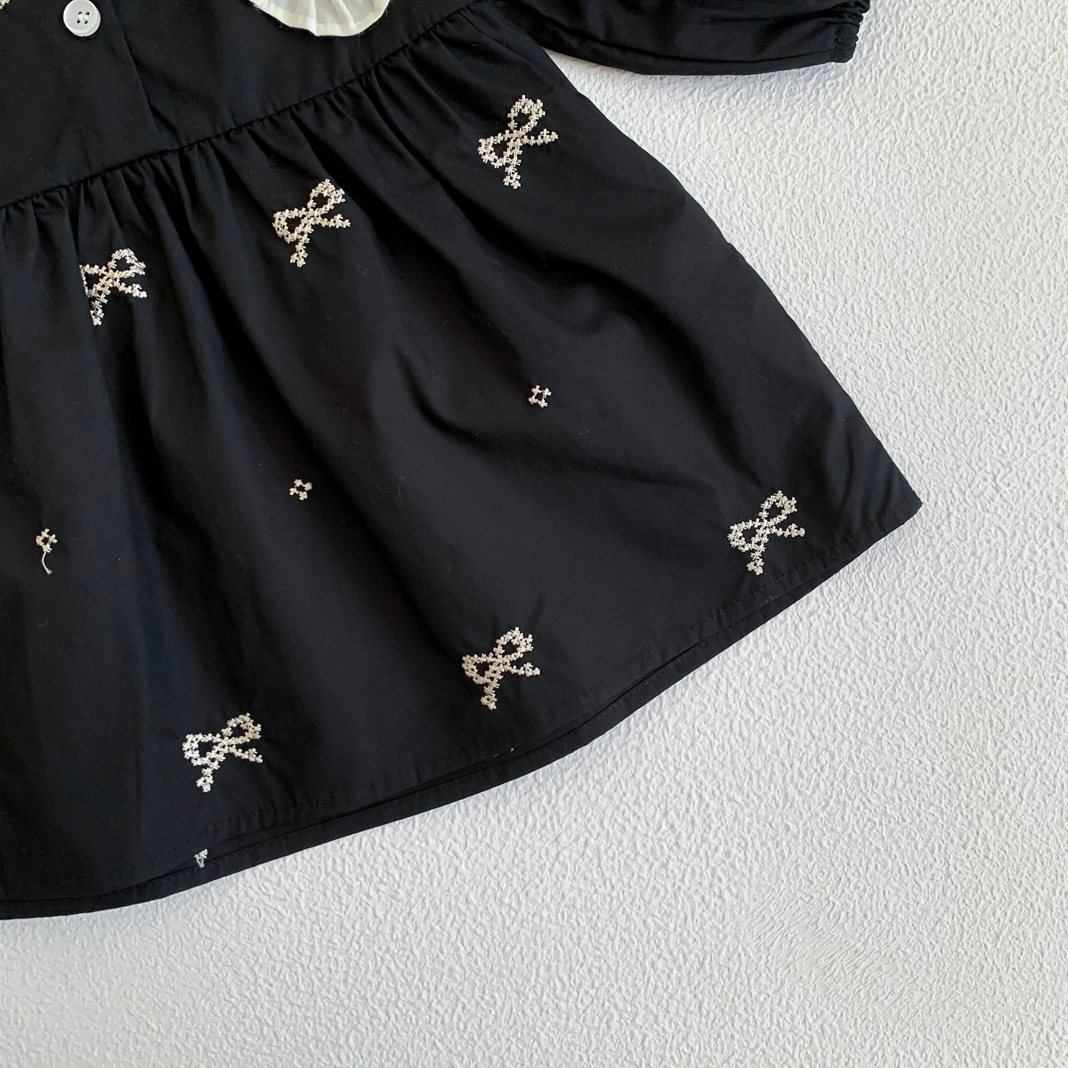【BS282】韓版翻領蝴蝶結長袖包屁衣小洋裝(1色)(可另外加購褲襪)