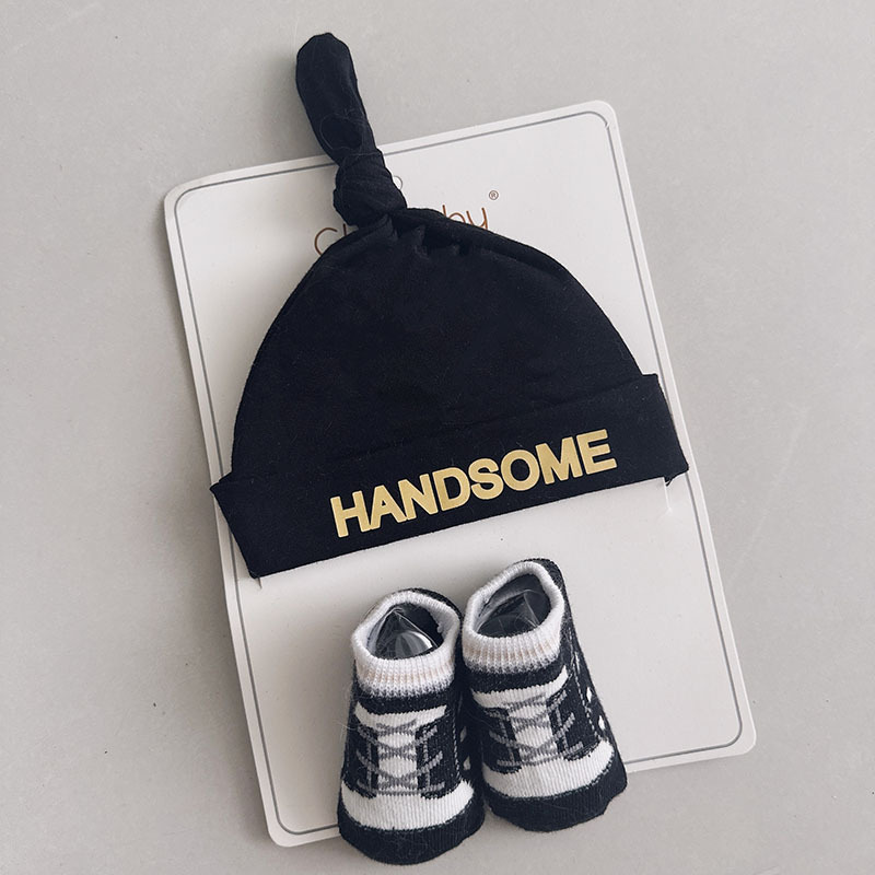 【BP047】歐美風字母寶寶帽子襪子套組(黑色)