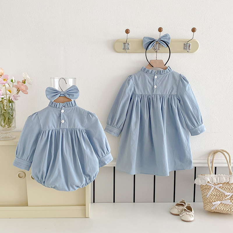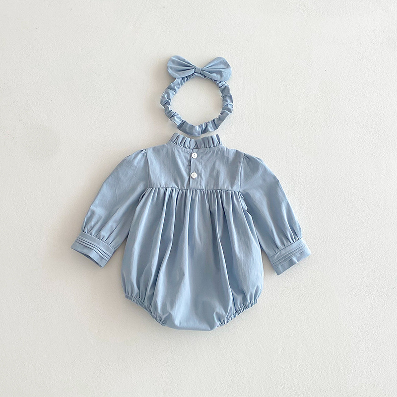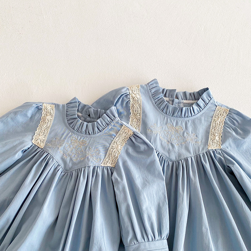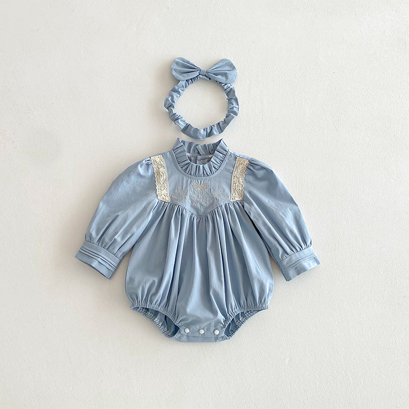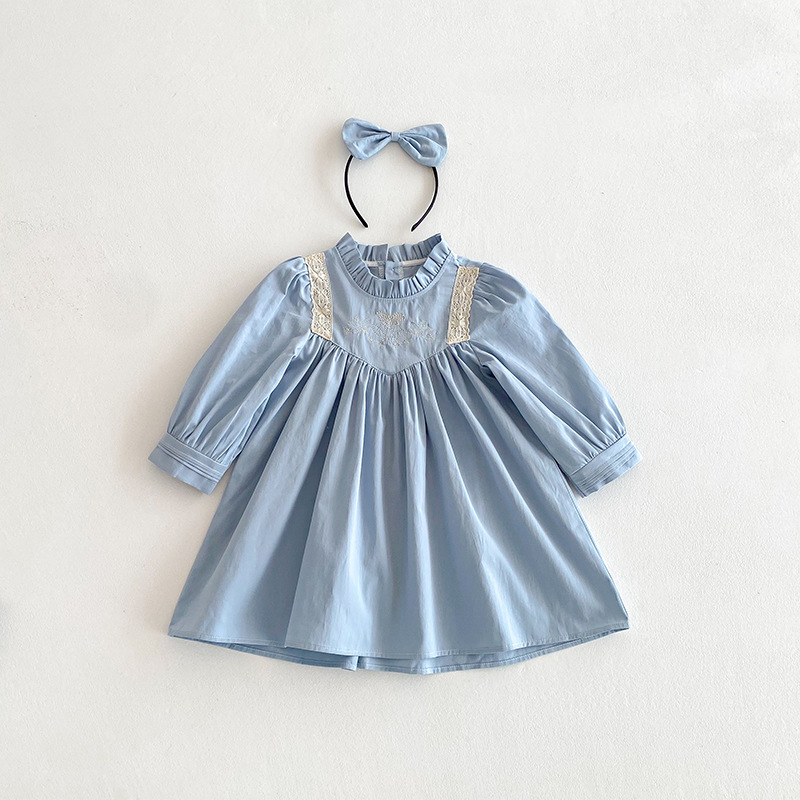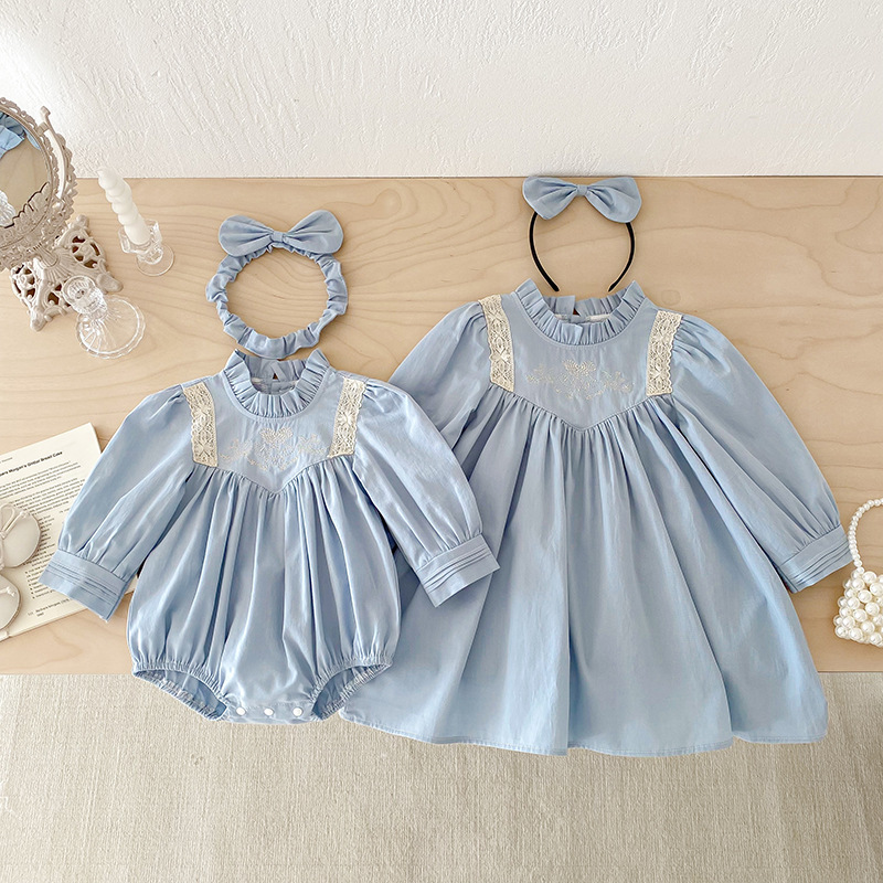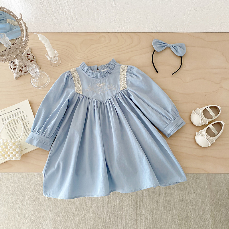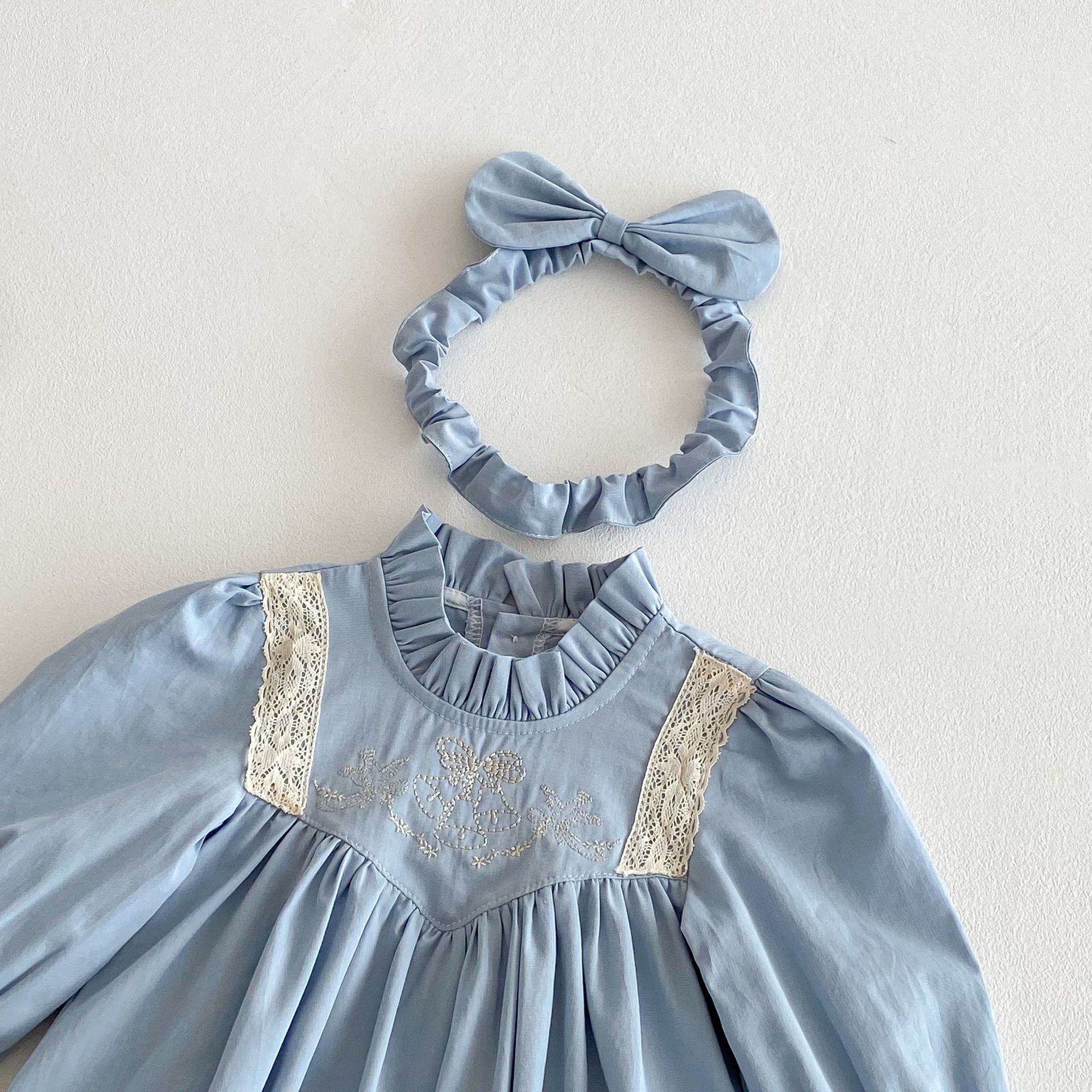 【BS284】韓版刺繡雕花長袖包屁衣小洋裝(送髮箍)(1色)