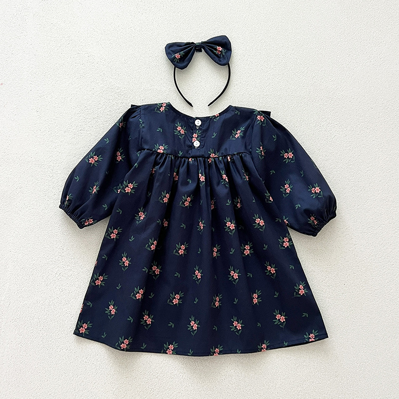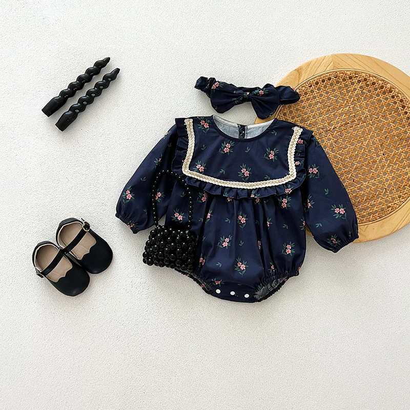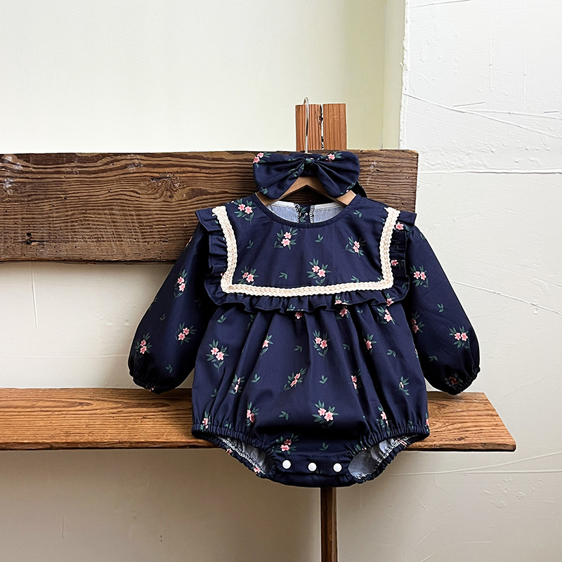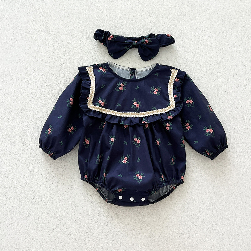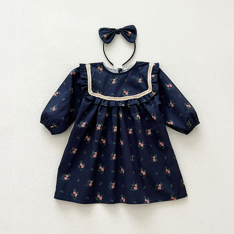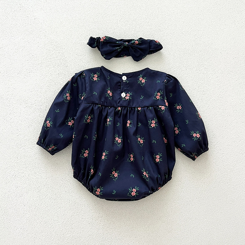 【BS294】韓版小粉花邊長袖包屁衣小洋裝(送髮箍)(1色)