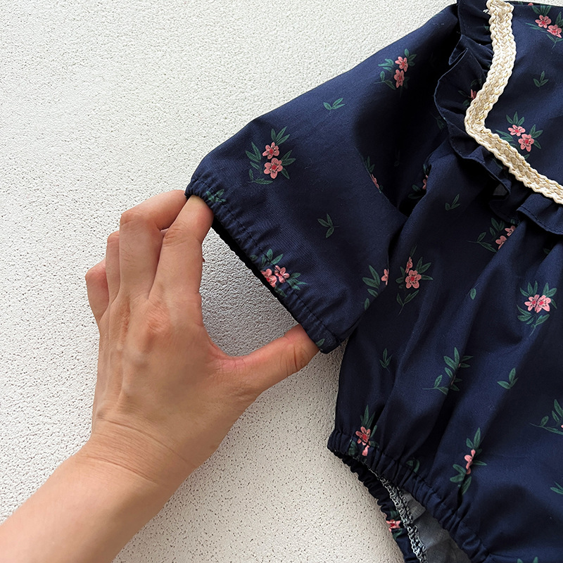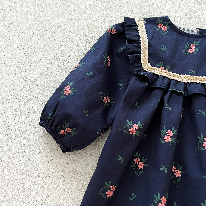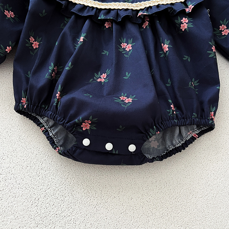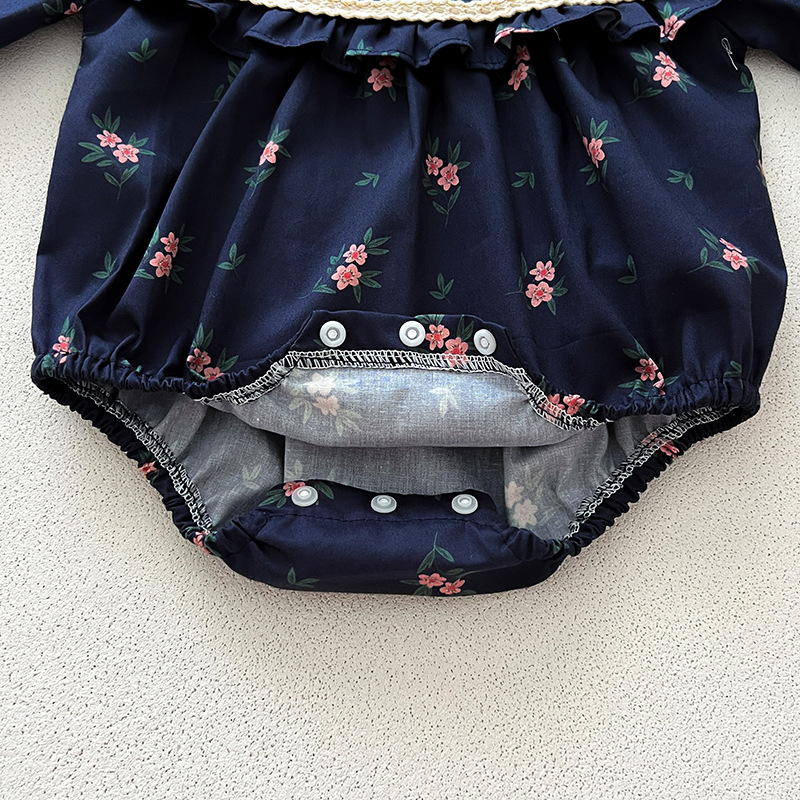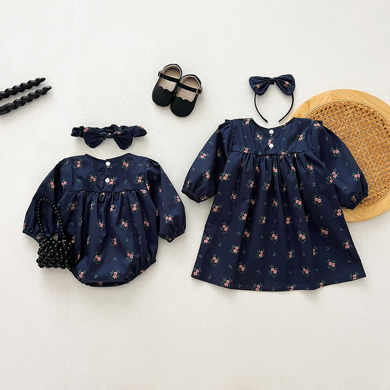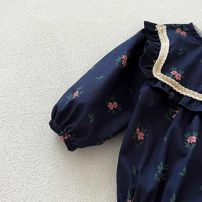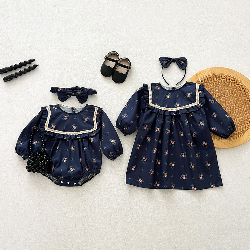 【BS294】韓版小粉花邊長袖包屁衣小洋裝(送髮箍)(1色)