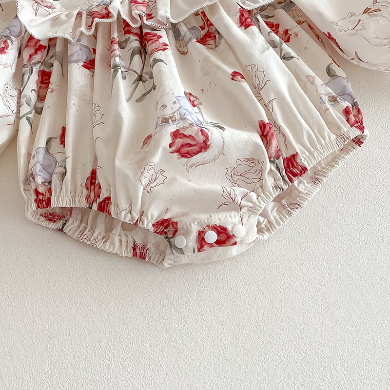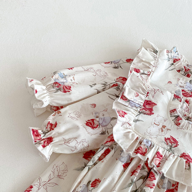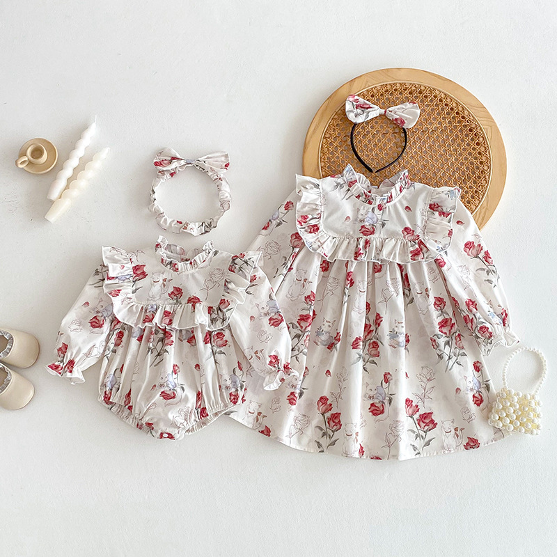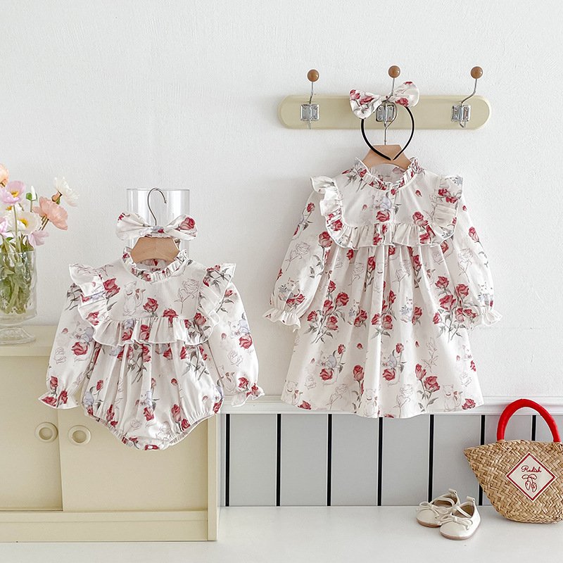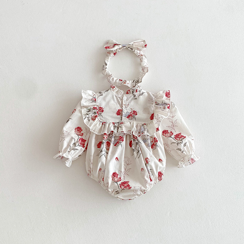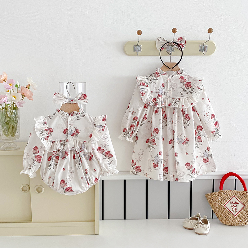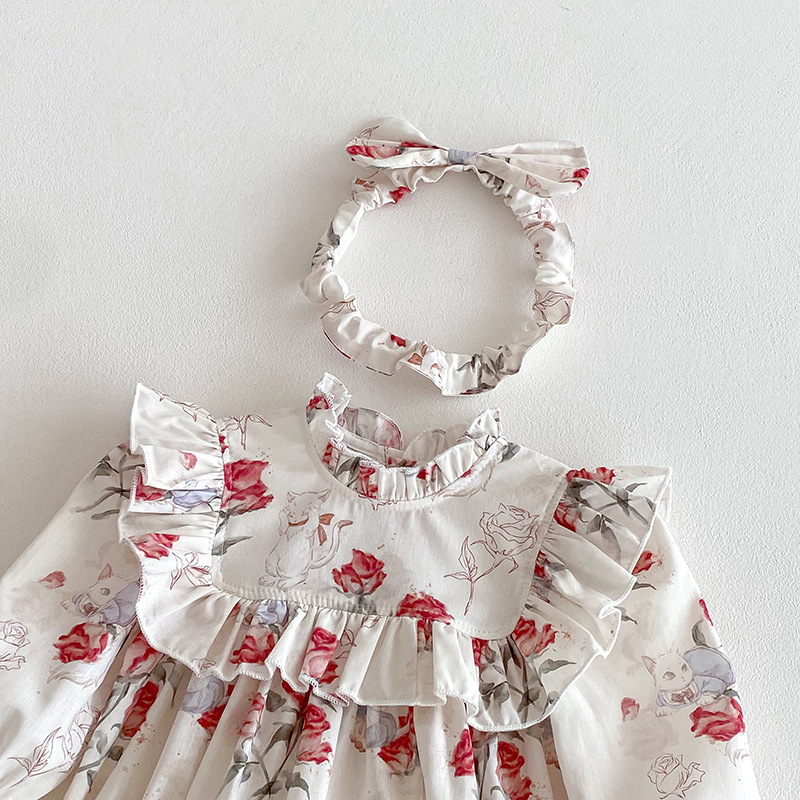 【BS302】韓版浪漫紅玫瑰長袖包屁衣小洋裝(送髮箍)(1色)