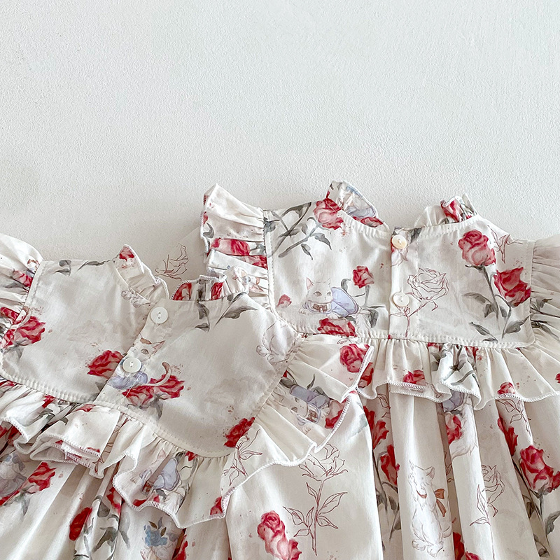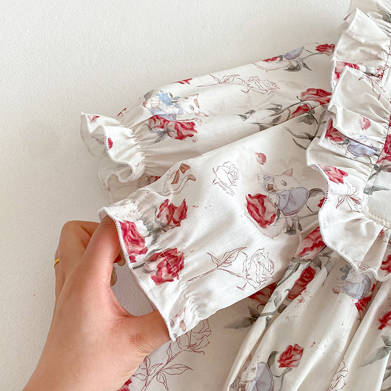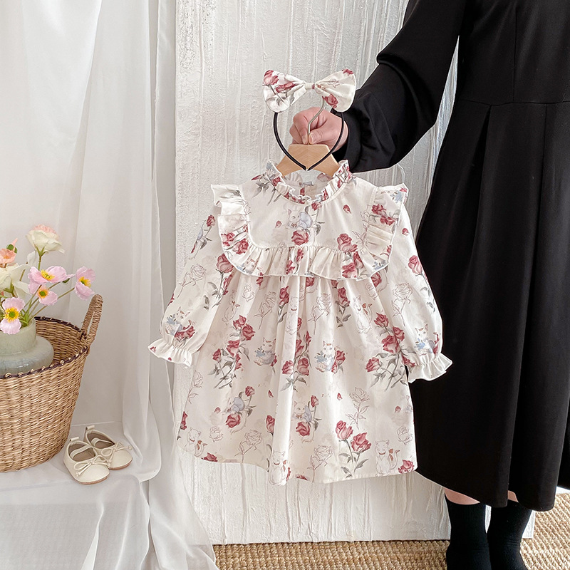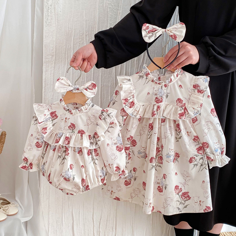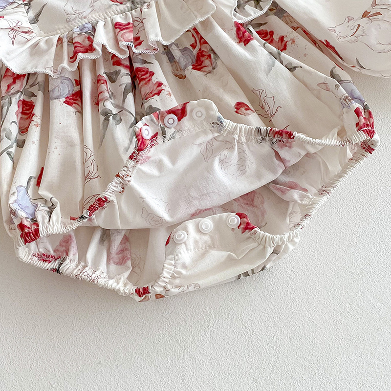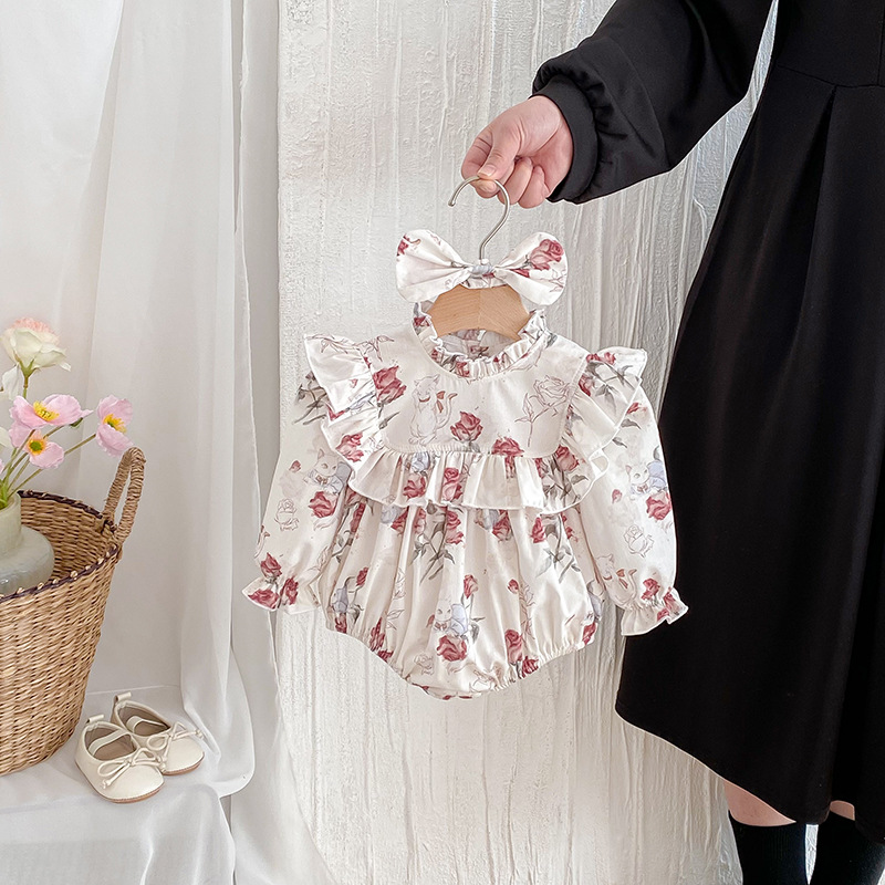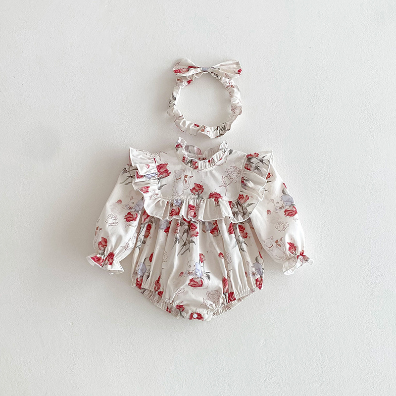 【BS302】韓版浪漫紅玫瑰長袖包屁衣小洋裝(送髮箍)(1色)