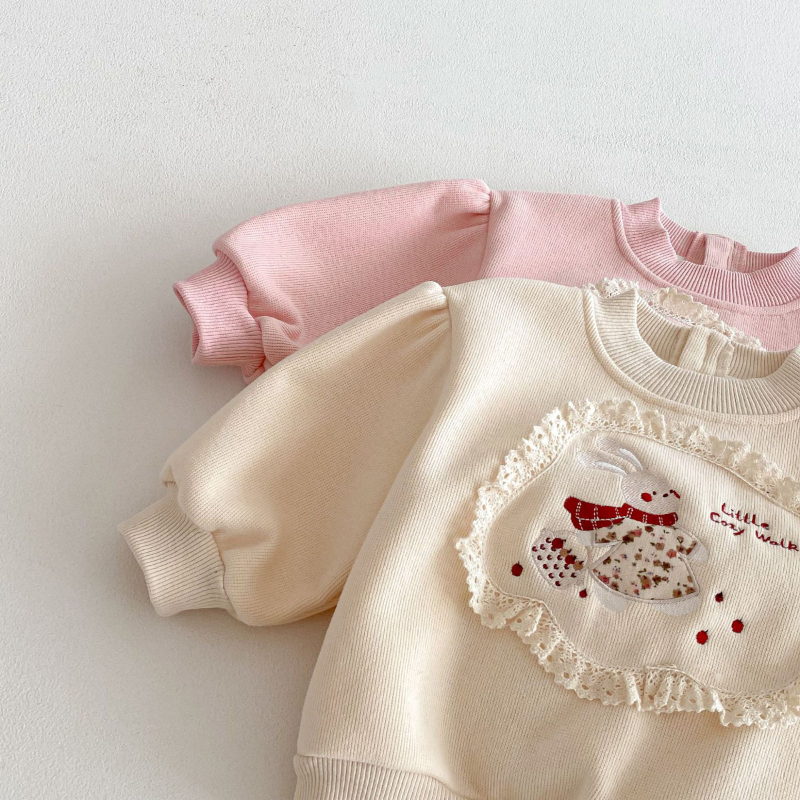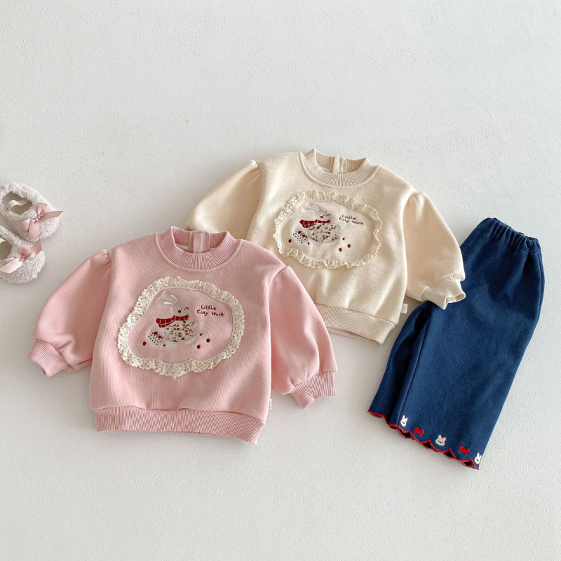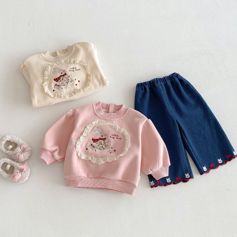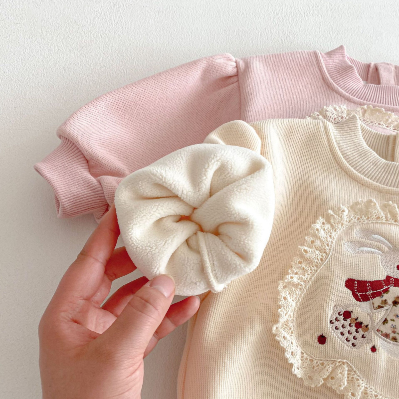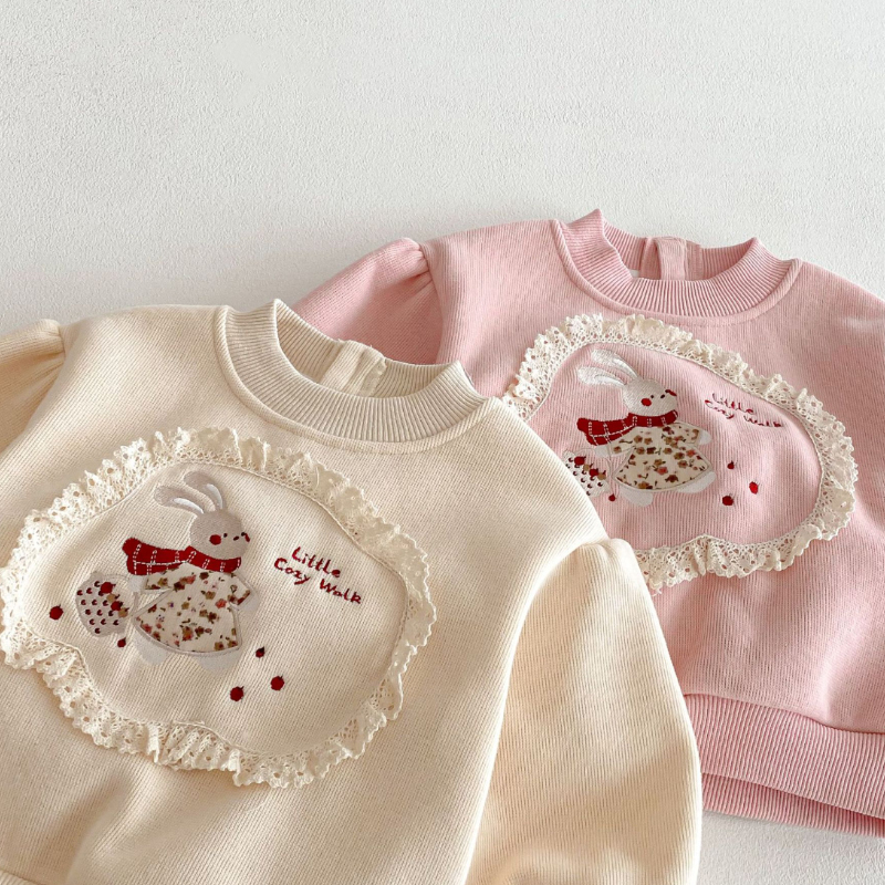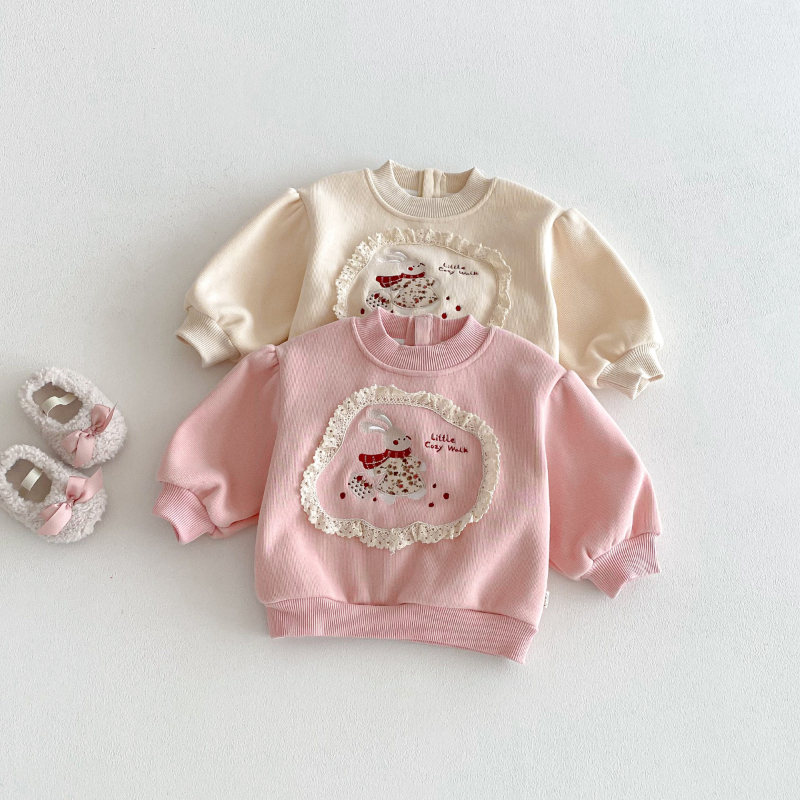 【BU239】可愛花邊小兔保暖上衣(2色)