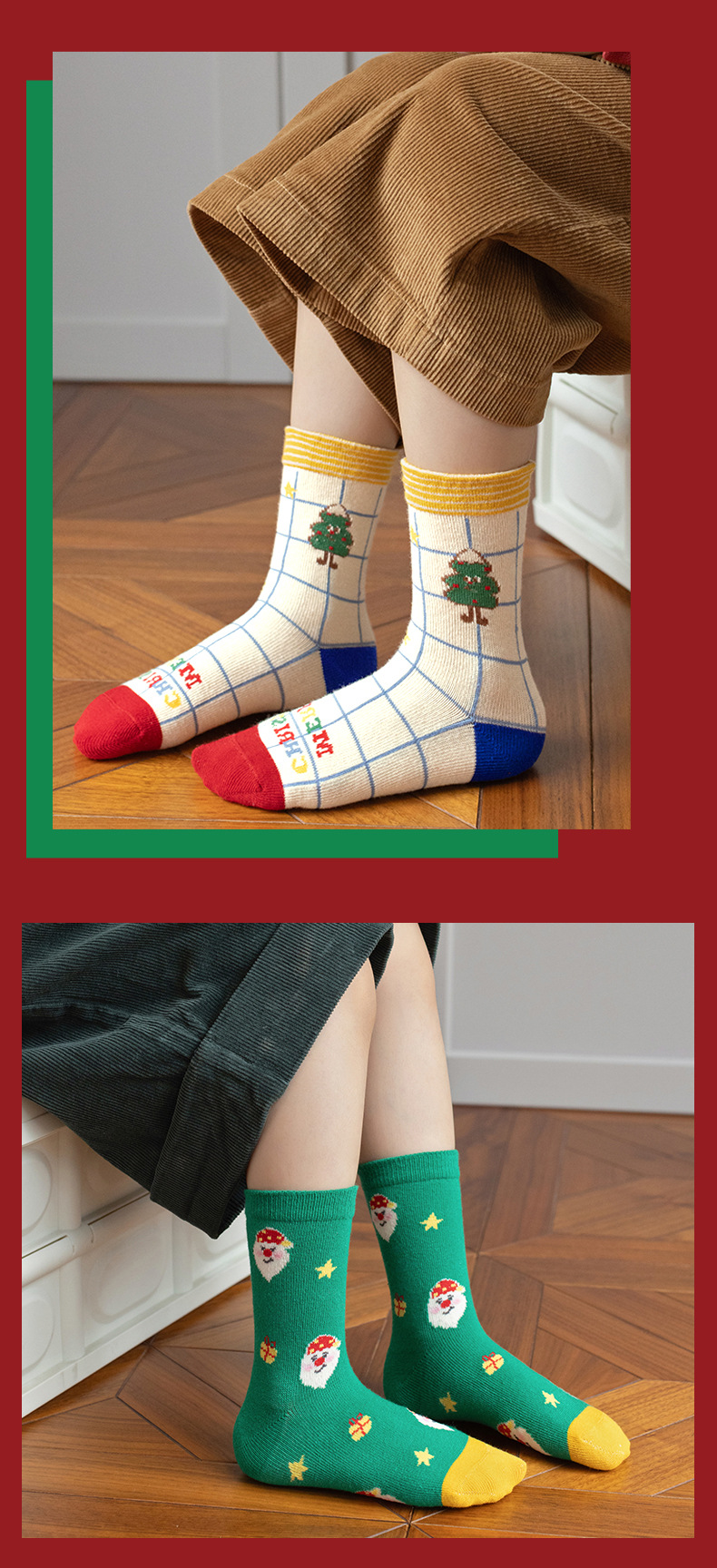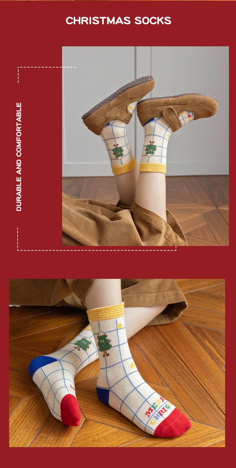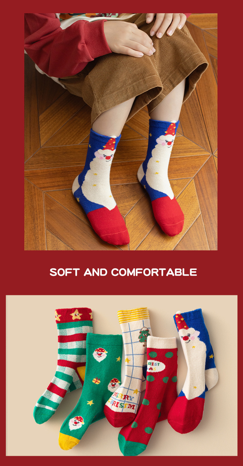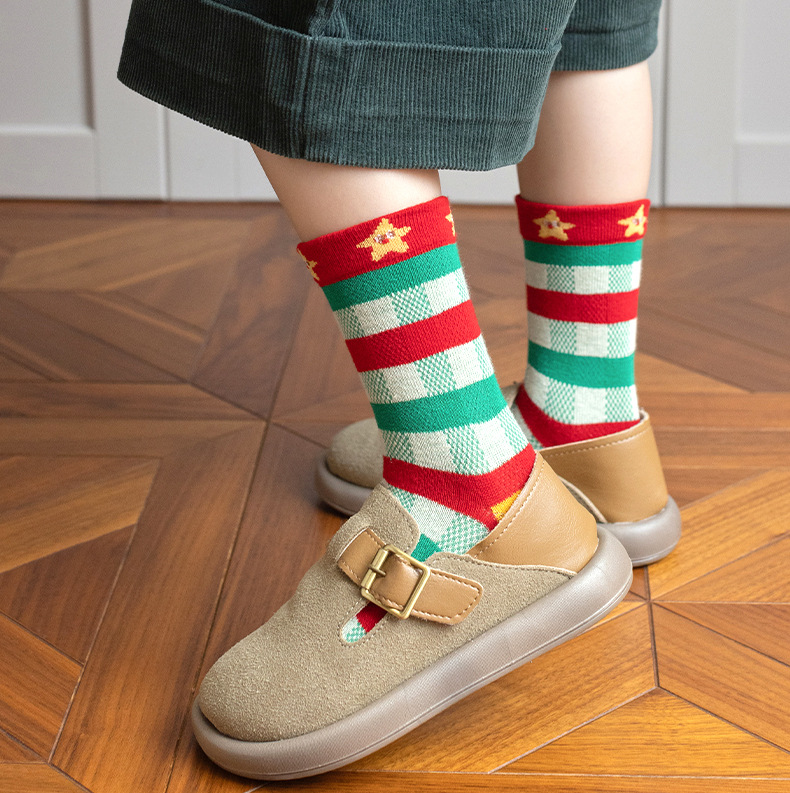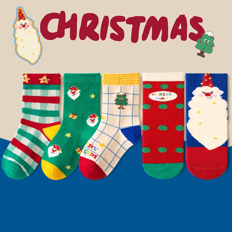 【SB093】童襪|韓版點點格紋聖誕樹中筒襪(5雙1組)