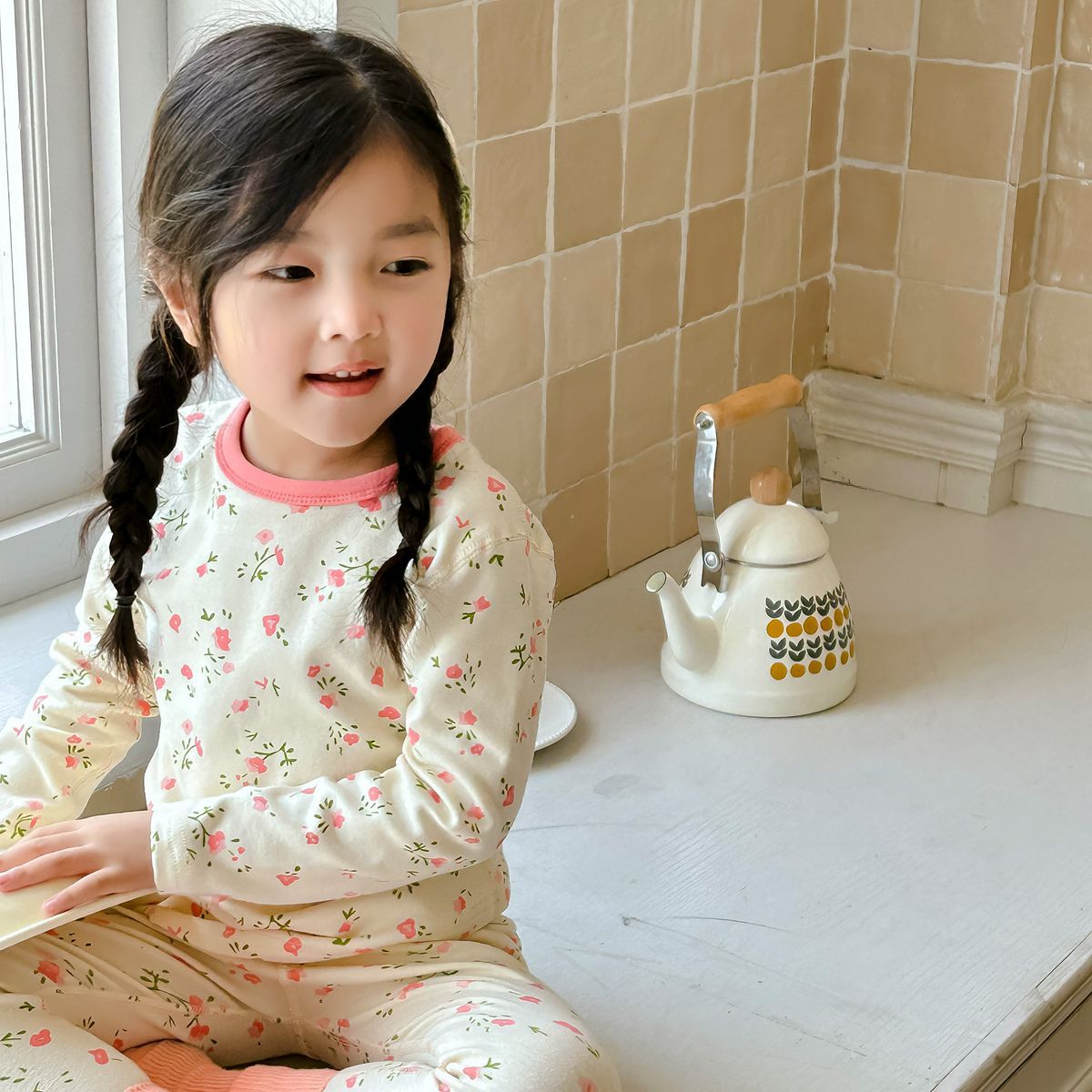 【HB024】日系粉紅小花成套睡衣(長袖/長褲)