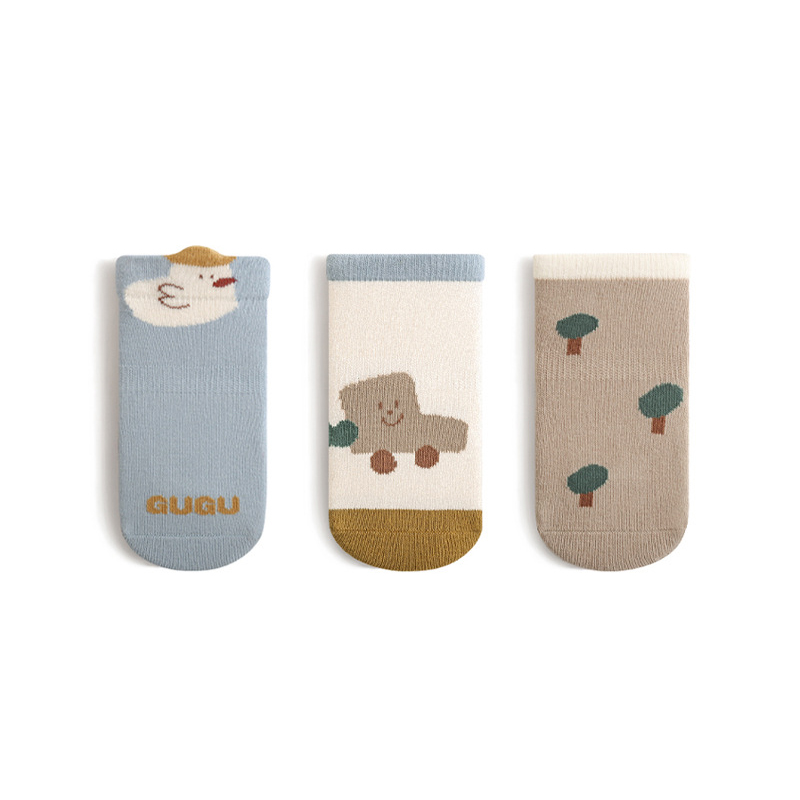 【SB200】童襪|日系藍色小鳥加厚防滑中筒襪(3雙1組)