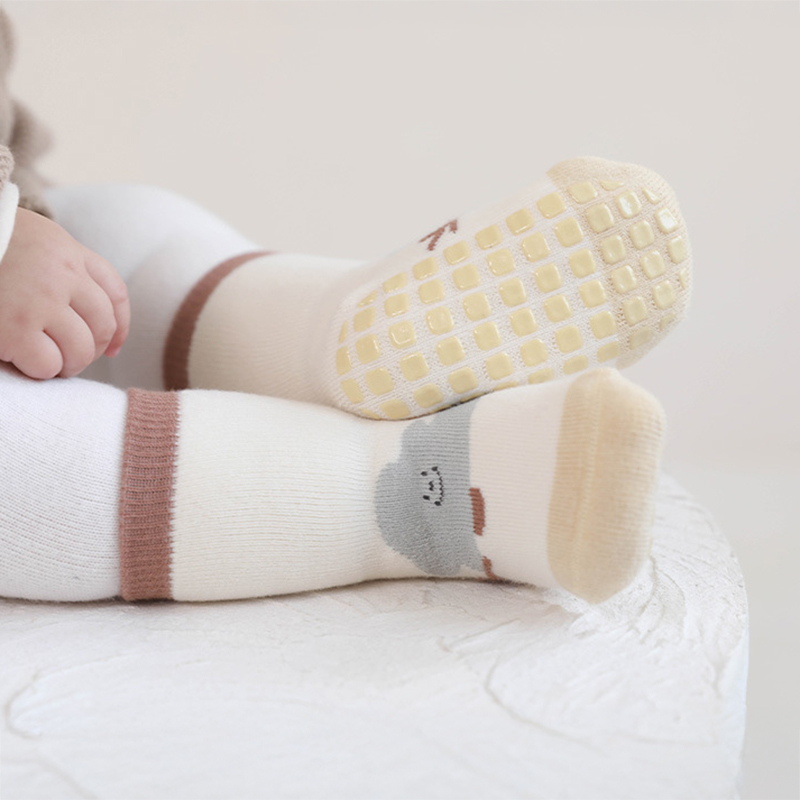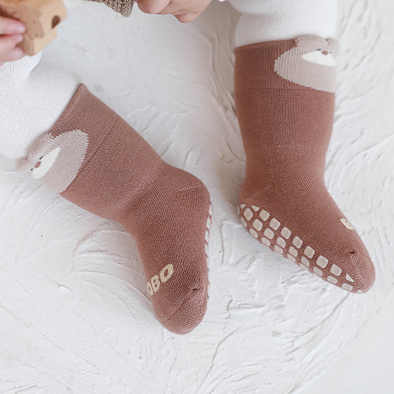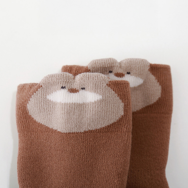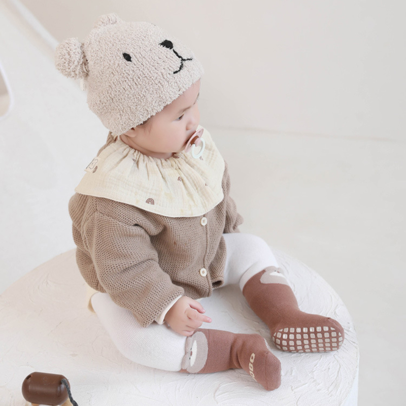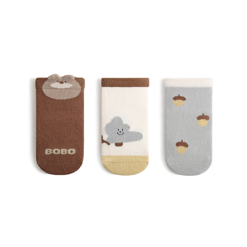 【SB201】童襪|日系棕色小熊加厚防滑中筒襪(3雙1組)