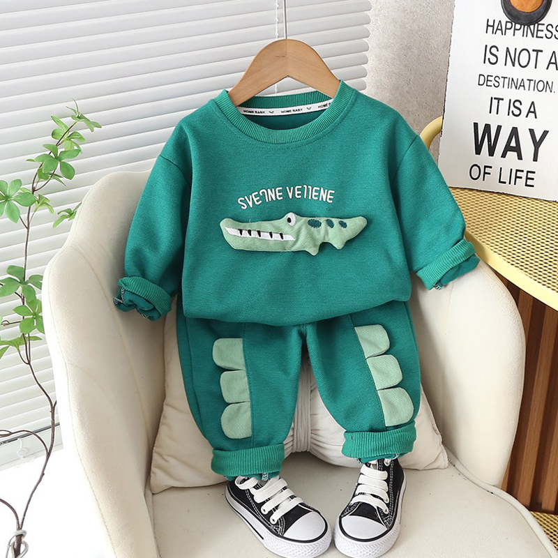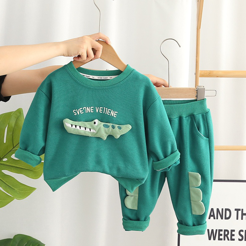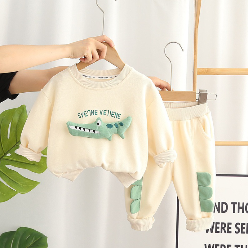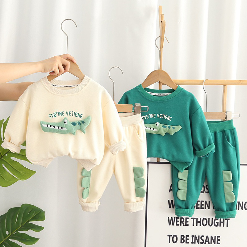 【BE211】日系立體鱷魚長袖長褲套裝(2色)