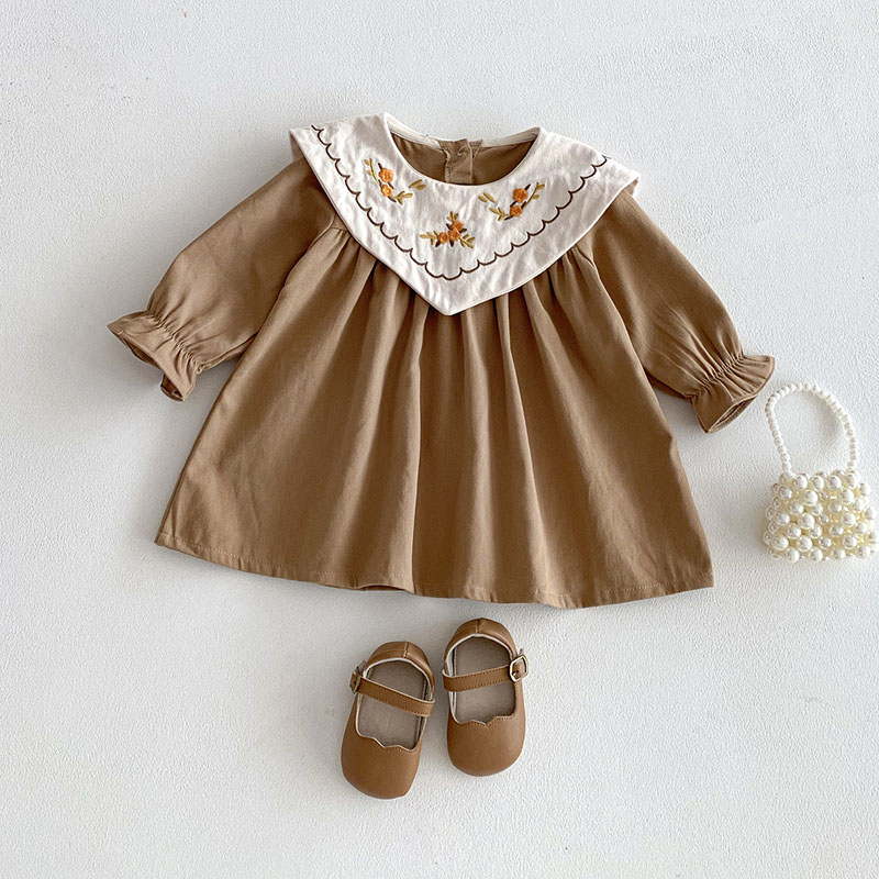 【BG930】韓版復古刺繡翻領長袖洋裝(1色)