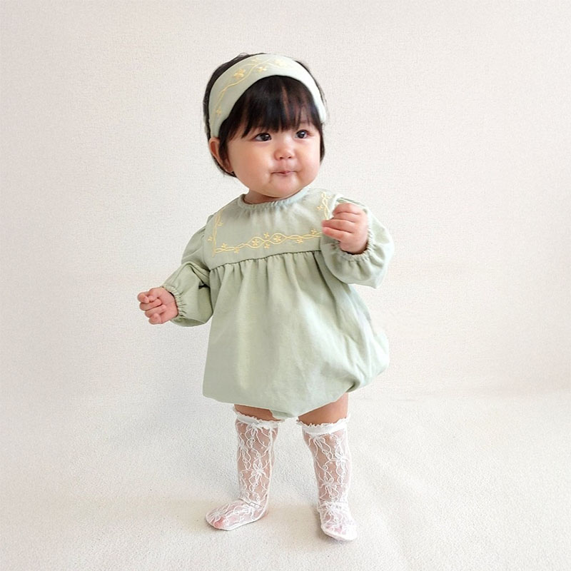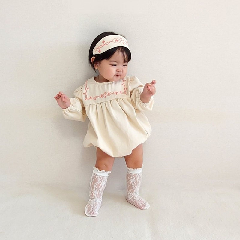 【BA914】日系細緻刺繡長袖包屁衣(附頭帶)(2色)