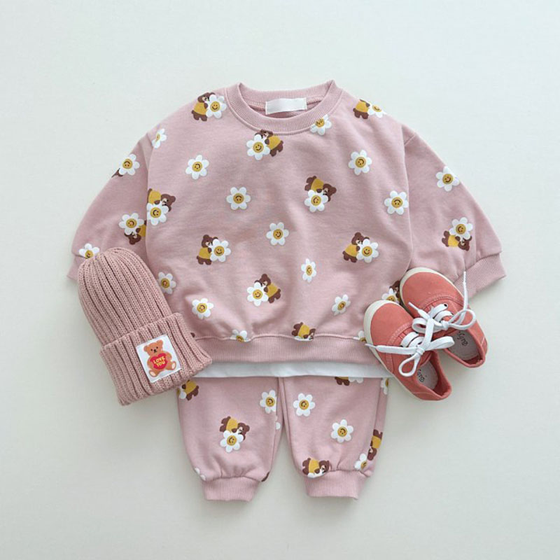 【BE243】韓版向日葵熊熊長袖長褲套裝(2色)