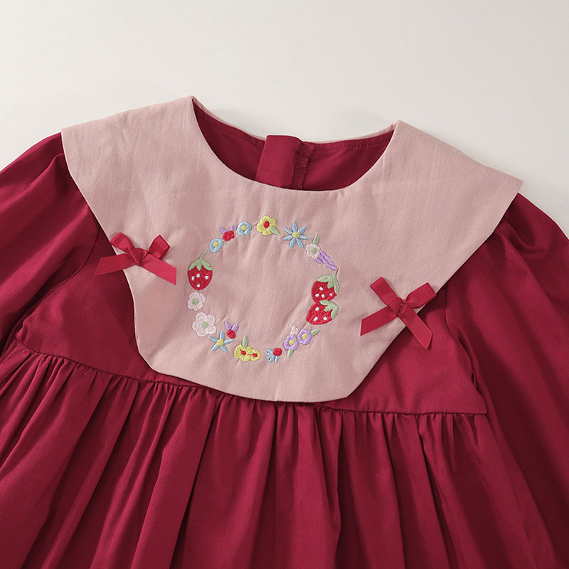 【BG932】法式復古風刺繡長袖洋裝(2色)
