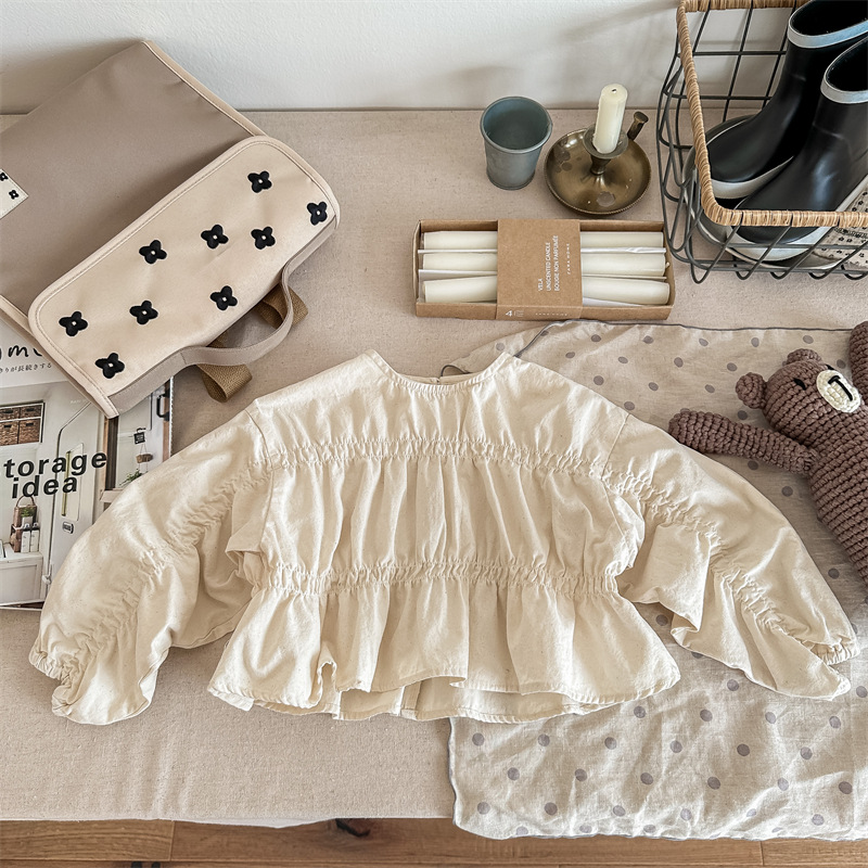 【BU273】日系棉麻皺摺長袖上衣(2色)