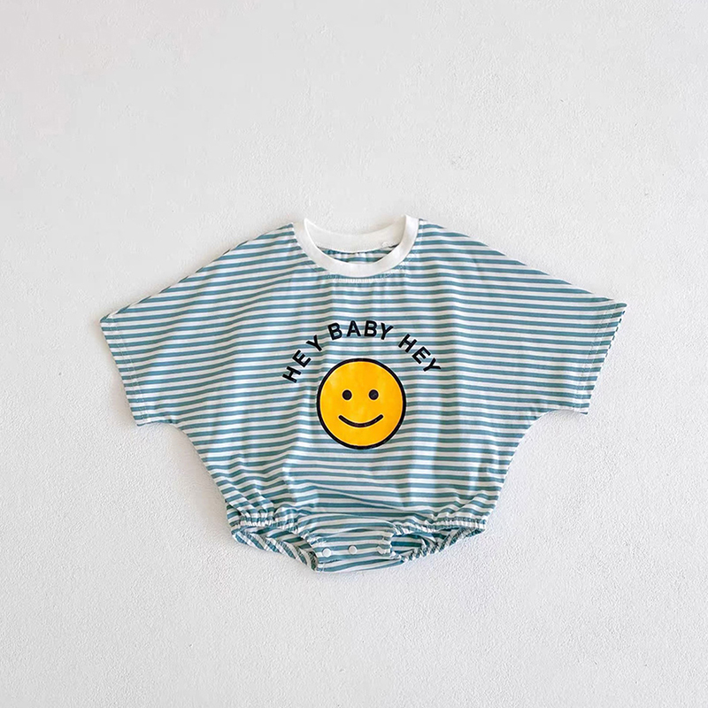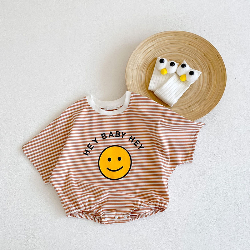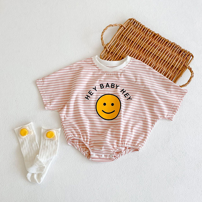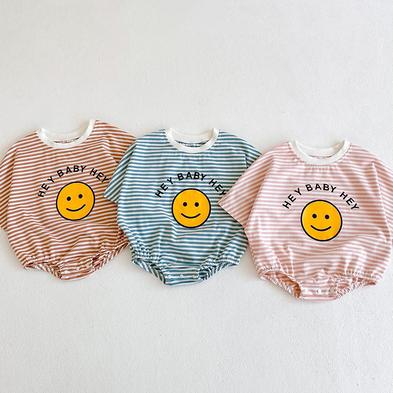 【BA1017】韓版笑臉條紋寬鬆短袖包屁衣(3色)